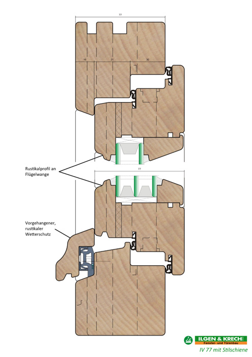 - Stockabdeckung ebenfalls verdeckte Regenschiene mit Holzabdeckung oder mit Profilholz auf Flügelrahmen möglich ( siehe Detailzeichnungen )