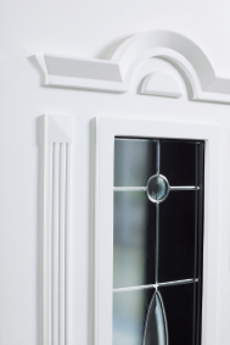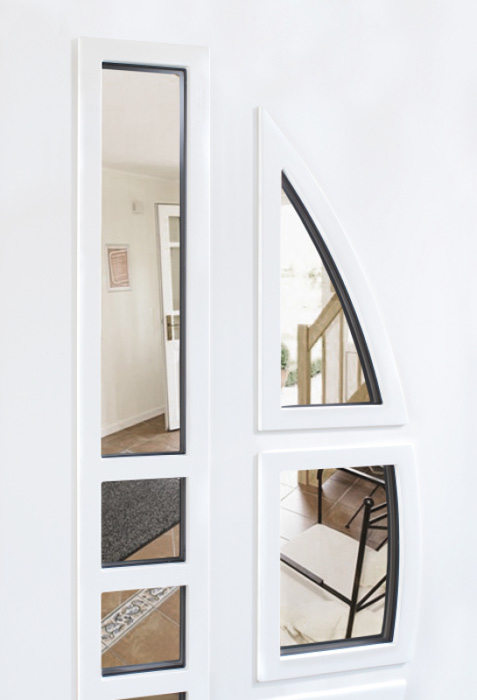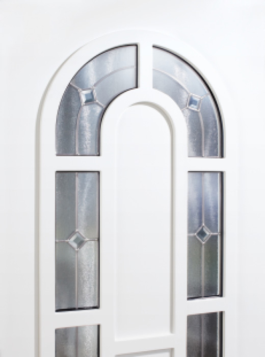 Iso-Bleiverglasung "Lifestyle" Chinchilla weiss mit eingefassten klaren Facettensteinen. Oder Iso-Reflo-Glas mit Facettensteinen