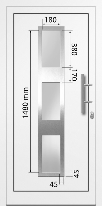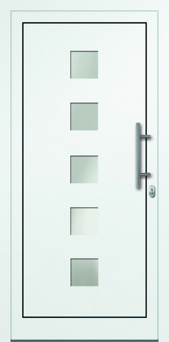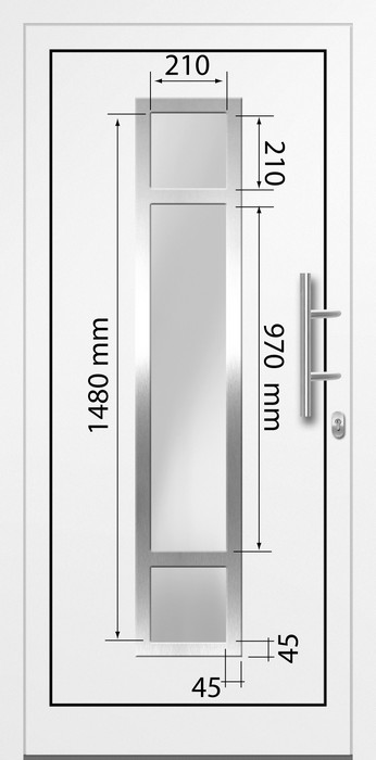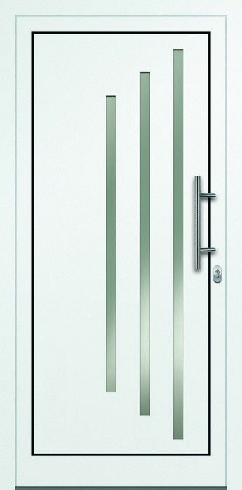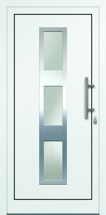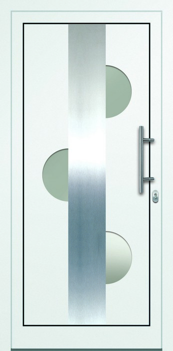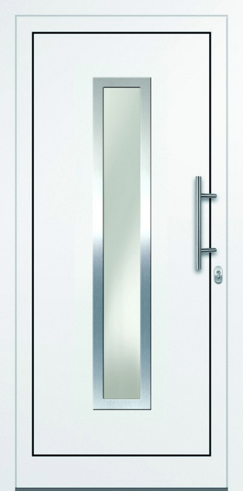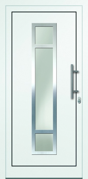 Die Hauseingangstüren der Serie Prezo bieten eine besondere Optik, Modern und dennoch Stilsicher. Die Haustürfüllungen haben alle eine Stärke von 28 mm.. Sie bestehen aus 1,3 mm starken Aluminium Deckschichten und Polyurethan-Hartschaum (FCKW-frei). Standardverglasungen sind Satinato, Chinchilla weiß, Mastercaré und Float klar aussen sowie 6mm VSG mit Wärmeschutz innen. Die Füllungen sind in weiß RAL 9016 pulverbeschichtet (Bilderfarben der Füllungen können aus tech. Gründen vom Original abweichen) sowie diversen Renolit Folierungen und RAL-Tönen erhältlich. Die Ornamentrahmen Alu-Nox sind eloxiert mit einer Edelstahloptik.